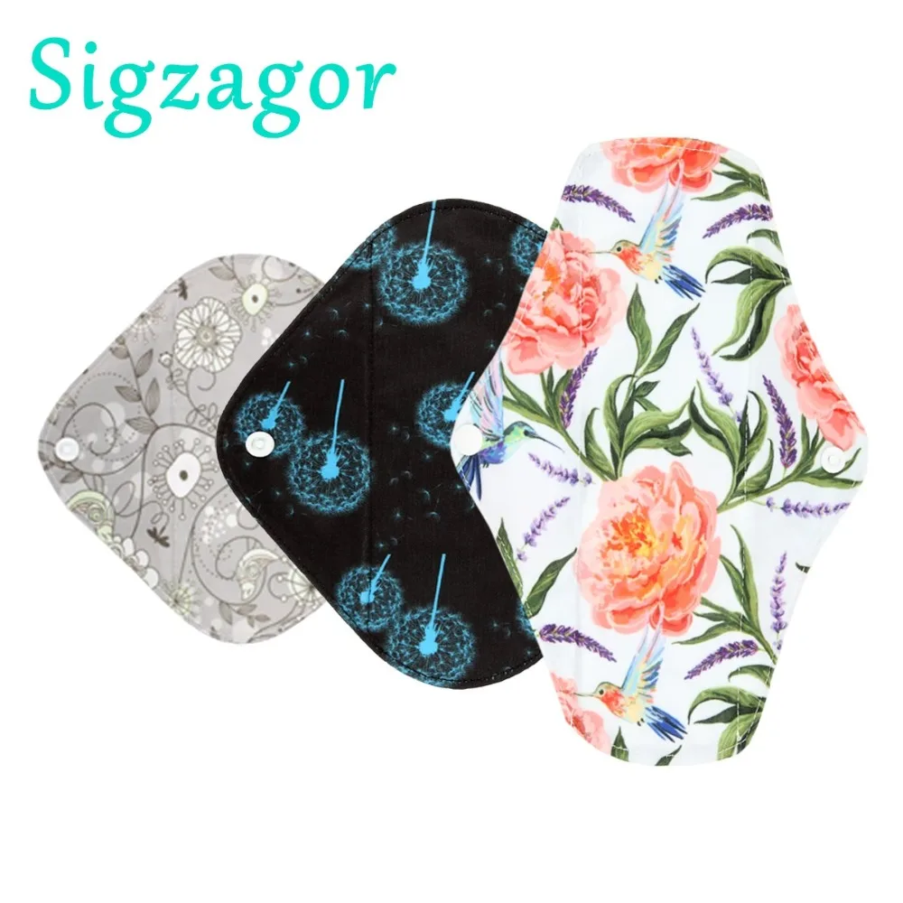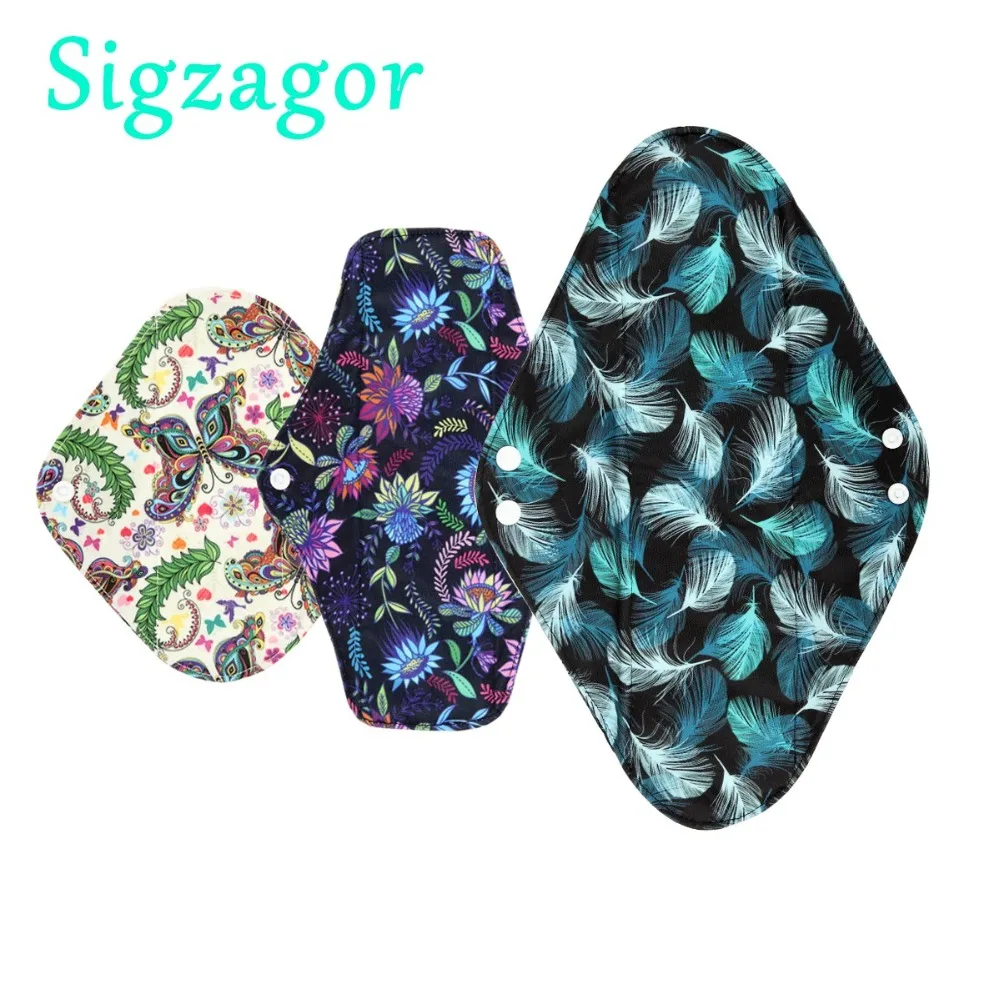 [Sigzagor]S M XL Cloth Menstrual Pad Mama Cloth Sanitary Bamboo Charcoal Reusable Washable Panty Liner Regular Overnight