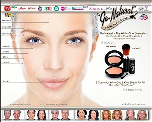 -. Binding : Health and Beauty -. Brand : Go Natural All-In-One Cosmetics ® -. Color : One Shade For All -. Feature : 8 Cosmetics ALL-IN-ONE / ONE Shade For ALL / GMP Certified - Made In America / Professional Grade Quality / Gentle Formula with Vitamins, Minerals and Anti-Oxidants -. Label : Go Natural Inc. -. Manufacturer : Go Natural Inc. -. Model : SS1 -. MPN : SS1 -. NumberOfItems : 1000 -. PackageQuantity : 1 -. PartNumber : SS1 -. ProductGroup : Beauty -. ProductTypeName : HEALTH_PERSONAL_CARE -. Publisher : Go Natural Inc. -. Studio : Go Natural Inc. -. Title : Go Natural The All-In-One Cosmetic ® Magic Powder Makeup Large Size Kit