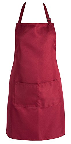 APRN-082- Wine Coloured Womens Cooking Catering Work Apron Tabard with Twin Double Pocket