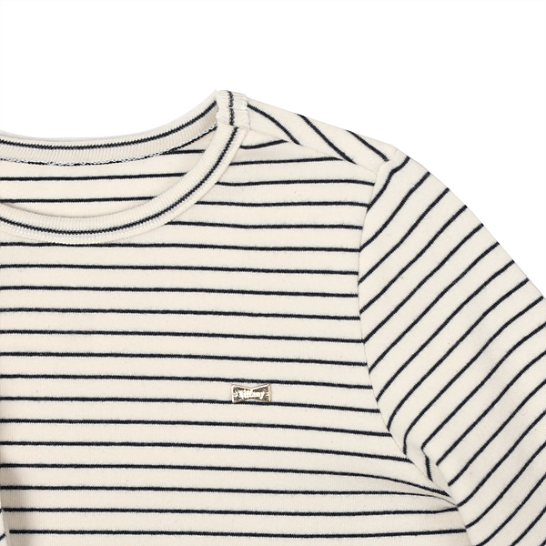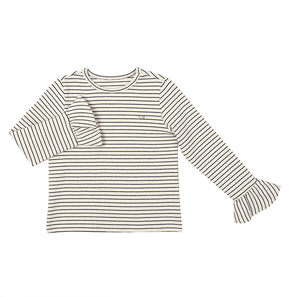 상 품 설 명 : 귀여운 소매프릴단이 포인트인 라운드넥 스트라이프 티셔츠 니트나, 레이어드해서 코디연출할수있는 기본스트라이프 티셔츠.