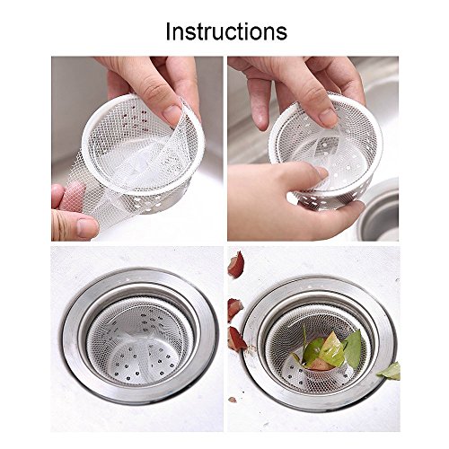 - High Quality: Made of PE material, strong load-bearing, high destiny mesh. No irritating smell, effectively filter food residue for kitchen sink or hair for bath drains.