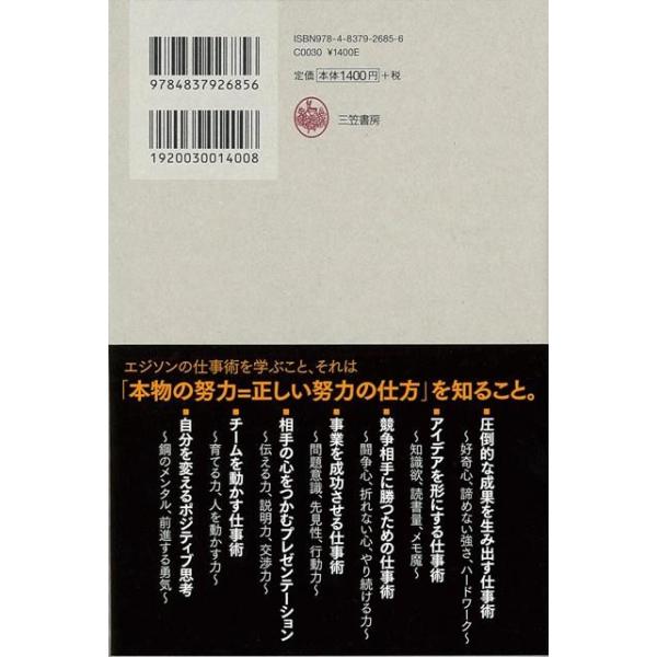 【商品説明】 定価(税込み):1,512円 値引き:10% OFF ジョブズやベゾス、ザッカーバーグなど現代の名だたる起業家が、150年も前のエジソンに並び称されるのは、なぜでしょうか?エジソンは発明王であると同時に、偉大な起業家、そして不屈のビジネスマンであったからにほかなりません。日本的「働き方」が問題視されるいまこそ、エジソンの仕事術に学ぶ点は数多くあるはずです。 バーゲンブック 新品 特価 格安 ビジネス 経済 スキル 日本 現代 | |