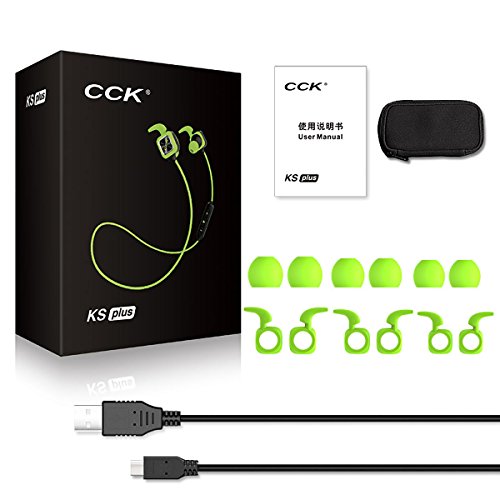 CCK KS Plus Bluetooth Earphone Wireless Sports Headphones Bass Stereo Earbuds With Ear Hook Mic Voice Prompt Handsfree Noise Reduction Sweatproof for Phone(Green)