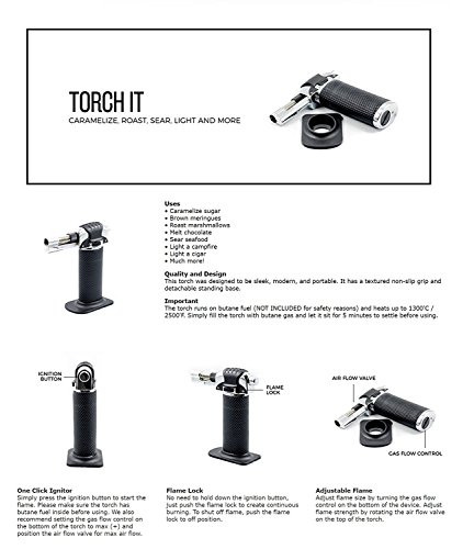 ✔ EASY ADJUSTABLE TEMPERATURES – Adjustable controls to customize anti-flare flame to perfection. Heats up to 1300°C/2370°F. Continuous flame option allows for extended use with minimal effort. Removable base and non-slip grip allows for optimal handheld control. Durable leak proof design with safety lock.