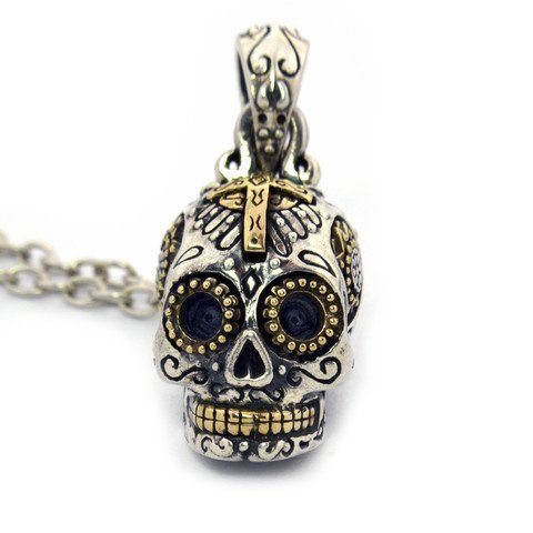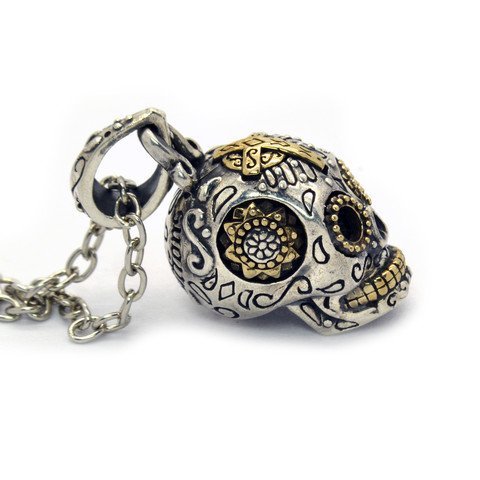 -. Feature : Solid 925 Sterling Silver with Brass Overlay / Pendant Dimensions: 18mm x 16mm x 12mm / Chain not included / Fits chains up to 4mm wide / Sugar skull pendant weighs 12g