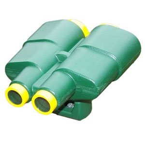 -. Feature : Polyethylene body with clear plastic lenses / Measures: 12L x 11W x 4H inches / Available in dark green with yellow trim / Includes mounting bracket for easy installation / Installs quickly to add instant fun to your playset