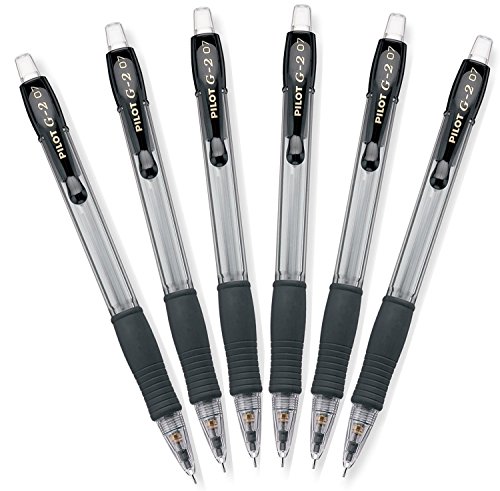Pilot G2 Mechanical Pencils, 0.7mm HB Lead, Black/Clear Barrels, 6 Pack