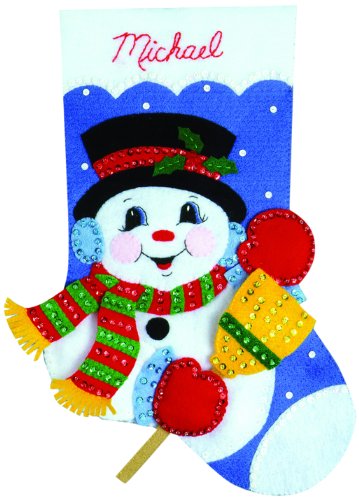Tobin Snowman with Broom Stocking Felt Applique Kit, 16-Inch