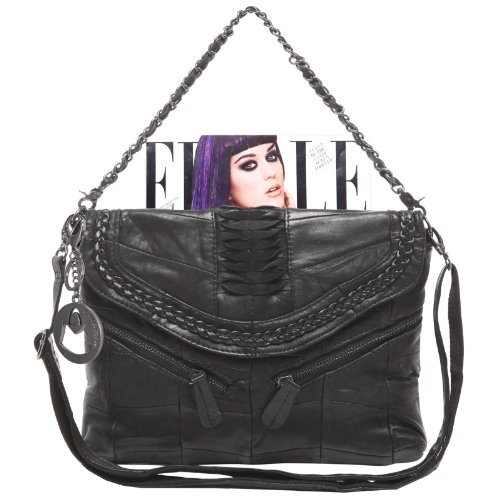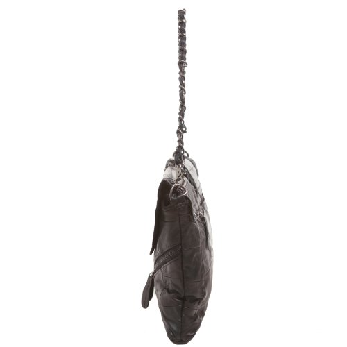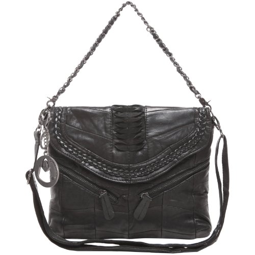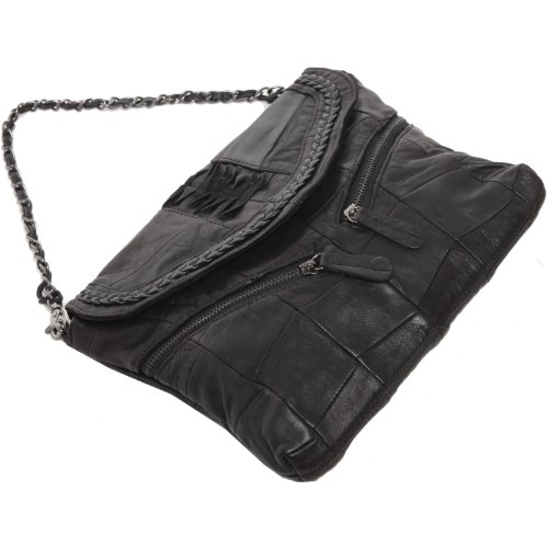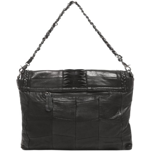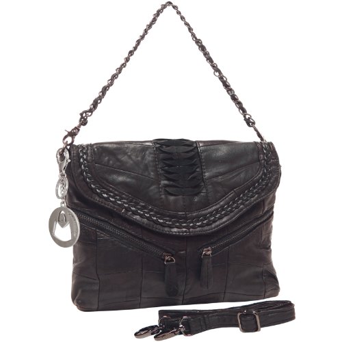 - Feature : A charming women's handbag with a quilted black lambskin leather exterior, gunmetal-gray hardware, and stylish accents featuring braiding and ruffles. / This top handle bag's fabric-lined interior is perfect for holding daily essentials, and the 2 slip pockets and 1 zippered pocket help keep smaller items organized and secure. / Carry this satchel purse as a clutch, or use the detachable chain-and-leather handle or the adjustable and removable shoulder strap to slip this quilted hobo tote onto an arm. / **Official MG Collection® product by MyGift® features signature keychain charm** / Genuine leather. Approximate Dimensions: Exterior - 11" W X 9" H X 2.5" D; Interior - 11" W X 8" H X 2.5" D; Handle - 8" handle drop; Shoulder Strap (fully extended) - 24" shoulder drop.