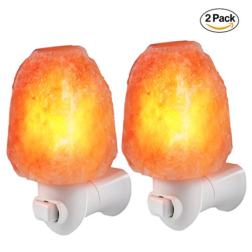 Natural Himalayan Salt Lamp, Hinmay 2 Pack Mini Hand Carved Crystal Night Lights Wall Light for Air Purifying Bedroom Lighting- Included 4 Light Bulbs