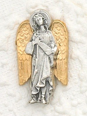 -. Title : Catholic Gift Two Tone Silver Base with Gold Tone Archangel St Saint Raphael 1 Inch Lapel Pin