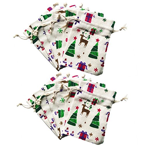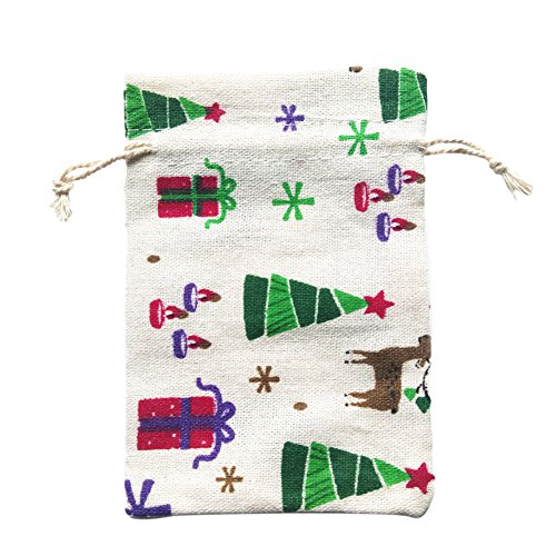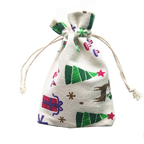 Natural Reindeer Burlap Gift Bag Drawstring Cotton Linen Christmas Candy Pouch Wedding Party Cute Sacks 12PCS