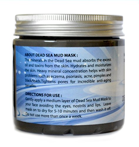 SMYRNA® DEAD SEA MUD MASK For Face and Body 8.8 oz / 250g 100% NATURAL and ORGANIC, SPA QUALITY Get Years Back On Your Skin. You'll get so many compliments soon. Get The Results You've Been Looking For ABOUT DEAD SEA MUD MASK: - The minerals in the Dead Sea Mud absorbs the excess oil and toxins from the skin. - Hydrates and moisturizes the skin. - Heavy mineral concentration helps with skin problems such as eczema, psoriasis, Acne, Pimples and Blackheads. - Tightens pores for incredible anti-aging benefits. - Reduces Wrinkles, Cellulite WHY BUY FROM US? - 100% MONEY BACK GUARANTEE - Awesome Customer Service - Best Affordable Price - Hassle Free Returns - Very Fast Shipping. Order Today, Ships Today!Feature