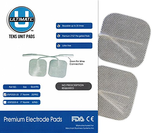 TENS unit Electrodes 2 X 2 Inch - 20 pcs Premium TYCO Gel Electrode For All Pin Leadwire Applications Including EMS IF MC NMES HVGPS Massage Best TENS Replacement Pads Available FDA Cleared OTC