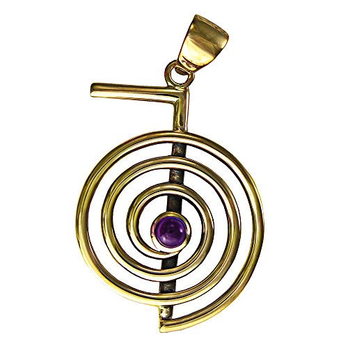 -. Title : Bronze "Cho Ku Rei" Amethyst Reiki Pendant with Natural Amethyst