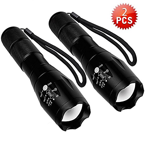 Ultra Bright Tactical Flashlight,1600 Lumens Portable Tac light, Outdoor Handheld Waterproof Torch with 5 Light Modes Adjustable Focus LED Flashlights-For Outdoor Sports/Camping Emergency(2PC)