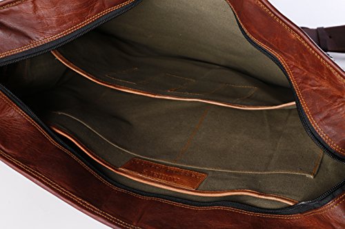 -. Feature : Genuine High Quality Leather with canvas lining / Size 14" width x 11" height x 4" depth / Big Front pocket for mobile, cash etc, Lockable main compartment. / 2 small inner compartments and 1 big inner compartment / 1 inner and 1 outer zipper compartment and adjustable shoulder strap
