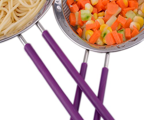 Fine Mesh Stainless Steel Strainer Set with Silicone Handles for Kitchen Food- Ideal to Strain Pasta Noodles, Quinoa, Sift & Sieve Flour & Powdered Sugar (Purple)
