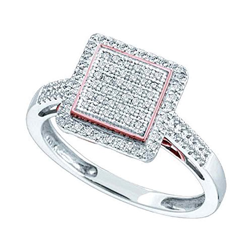 -. Title : 10kt White Two-tone Gold Womens Round Diamond Rose Square Cluster Ring 1/3 Cttw