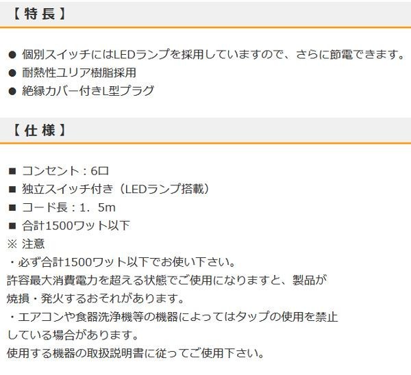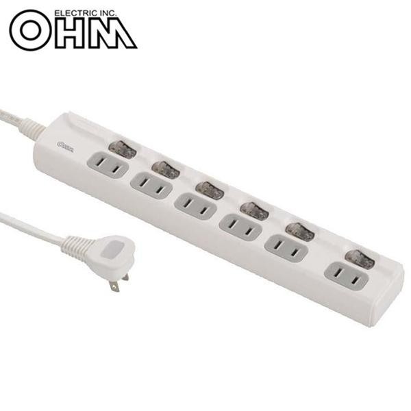 個別スイッチにはLEDランプを採用していますので、さらに節電できます。 生産国:中国 ※サプライヤー直送品 ご注文後3~4営業日後の出荷となります【商品名】OHM LED個別スイッチ付き 節電タップ 6個口 1.5m HS-T1947W