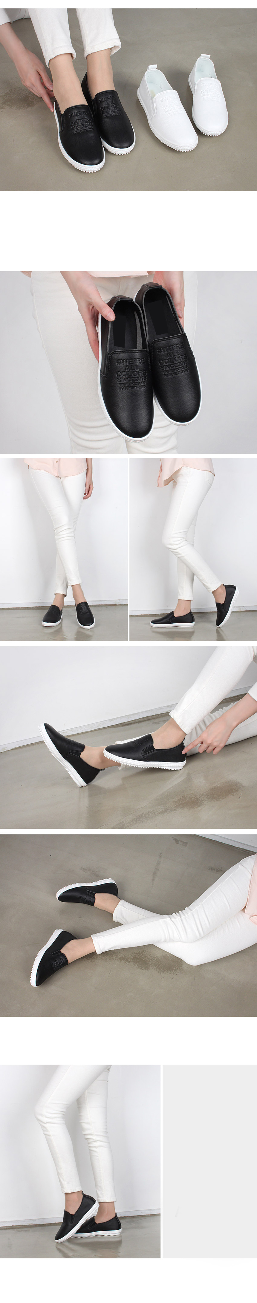 Female slip-on domestic artificial leather lettering shoes White Black FS-F5126 20s sneakers