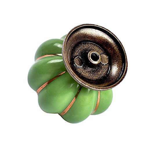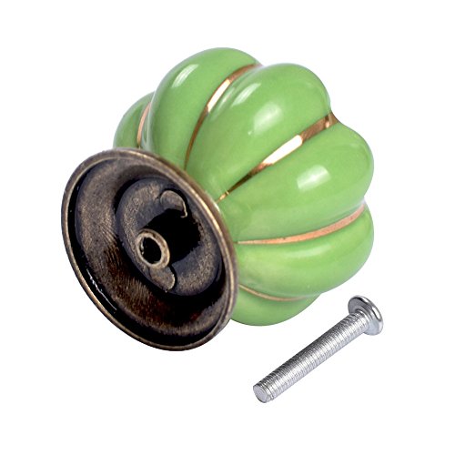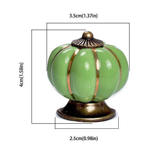 Material:Ceramic material and copper alloy Pumpkin diameter:35mm Knob height:40mm Base diameter:25mm Color:White,red,yellow,black,blue,green,orange Knob weight with package:720g Package: 12x Pumpkin Knobs(35mm) 12x Screws 0