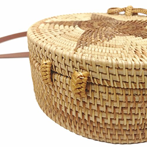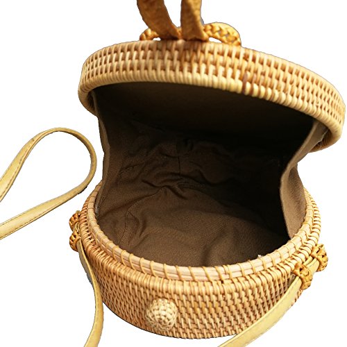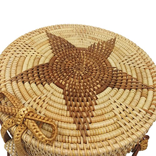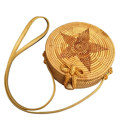 amololo Flower Woven Round Rattan Bag Straw Crossbody Bag with Bow Tie Closure