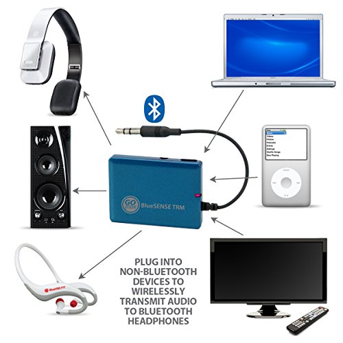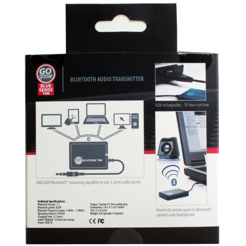 GOgroove BlueSENSE TRM Audio Streaming Bluetooth Transmitter. Unlimited Bluetooth Streaming - The GOgroove BlueSense TRM is a portable Bluetooth TRANSMITTER allowing wireless streaming from virtually any audio source! Charge via standard USB port & pair with your favorite Bluetooth-enabled speaker system or headset! BlueSense plugs in to any standard 3.5mm audio-out jack for instant streaming convenience. Easy Set-up - BlueSense automatically syncs with your Bluetooth speakers , headsets , & headphones. Simply enter device into "Pairing Mode ," hold down BlueSense's power button for 5 seconds and you're set! With 10 hours of power on a single charge , the uses are endless! Wide-Range Compatibility - If you have an audio device that isn't Bluetooth capable , the BlueSense is for you! Just sync with a speaker system or headset to enjoy audio at home , or use a portable Bluetooth speaker & stream while camping , tailgating or at your next party! Plug into an audio receiver & pair with a Bluetooth headset for personal audio. Stream Audio from:. Laptops: Samsung , LG , Apple , Toshiba , Dell , HP , Acer , Lenovo , ASUS , HP , Alienware - TVs: VIZIO , Sharp , Sony , Panasonic , LG , Toshiba - Stereos: Supersonic , Bose , Sony , Acoustic Audio , Jensen , GPX , Sylvania , Panasonic , Pyle , JVC , Sanyo - Tablets: ASUS , HP , Microsoft , Apple , Samsung , Dell , Chromo Inc , Dragon Touch , NVIDIA , Lenovo , Toshiba. & more Tablets , MP3 Players , TV's , Laptops , Desktops , Stereos , CD Players , Radios. *This product is a TRANSMITTER , not a receiver. Bluetooth compression/decompression may cause a delay in audio/video usesFeature