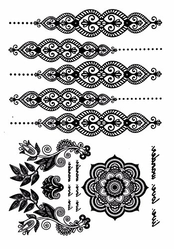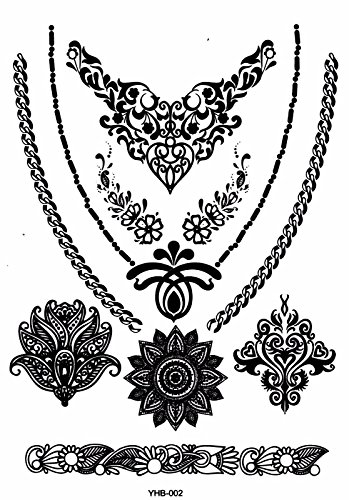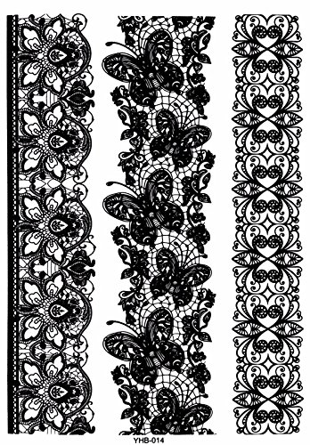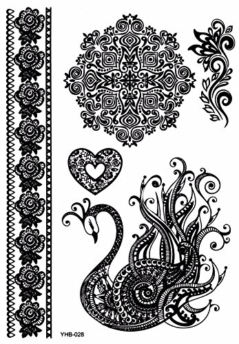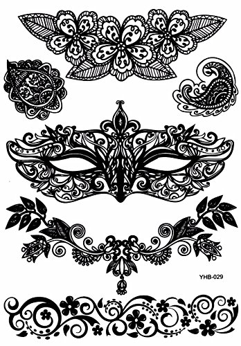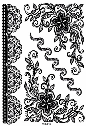 6 Sheets Black Lace Temporary Tattoo Black Ink Henna Stickers G/2B