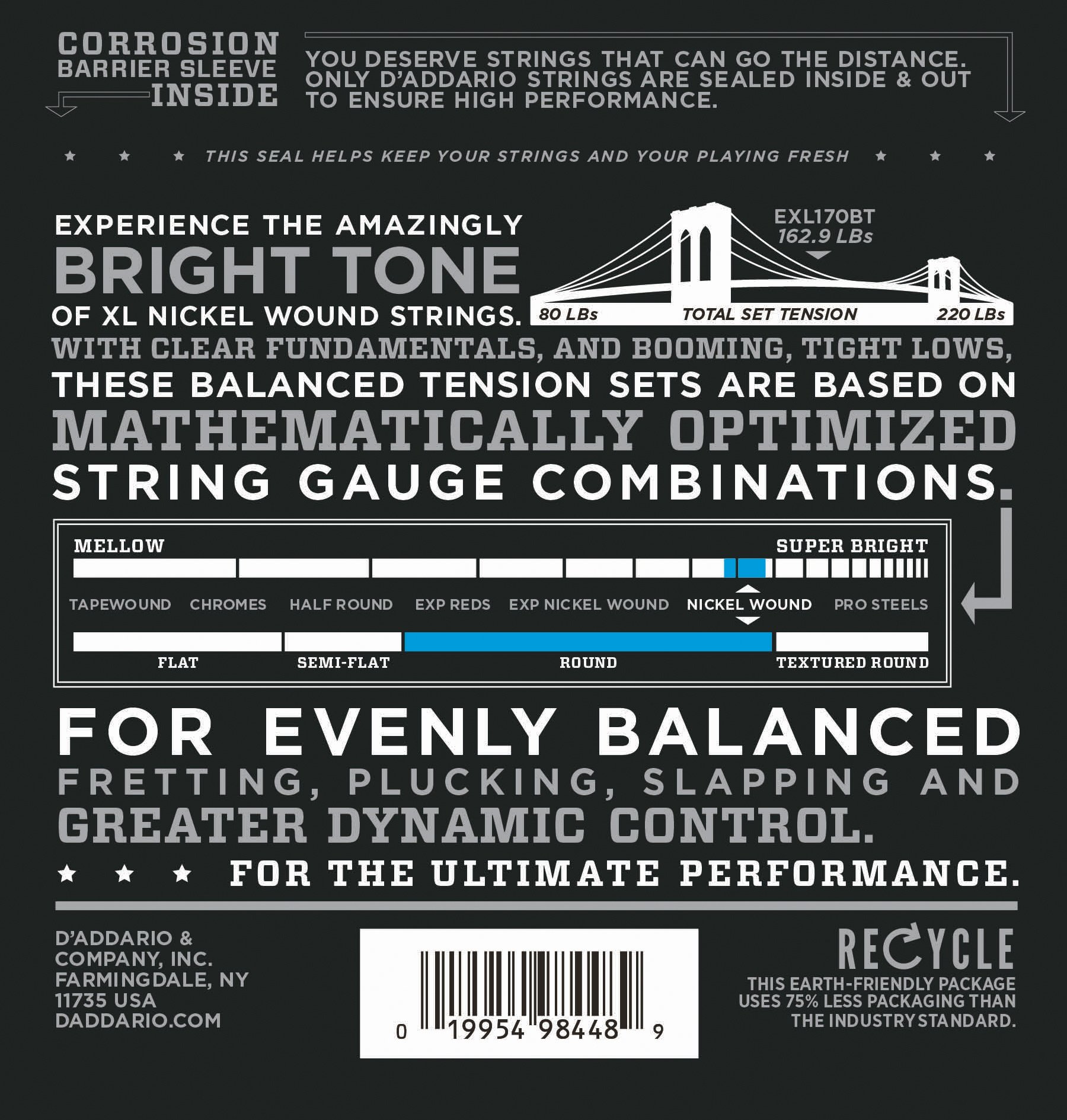 D Addario EXL170BT Nickel Wound Bass Guitar Strings Balanced Tension Light 45-107
