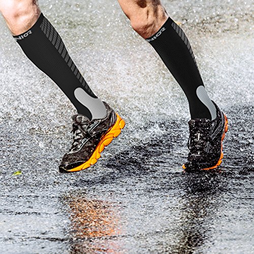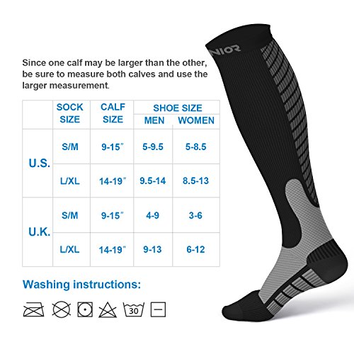 Features: Form fitting, lightweight and breathable fabric features maintain joint stability regardless of activity; 10-20 mmHg graduated compression, boost blood circulation. Application: A great gift to runners, athletes, fitness workouts, hiking, tennis, cycling, office workers, airplane travelers, or anyone on their feet all day, it is beneficial to their health. Washing suggestions: 1. Wash with similar colors items 2. At a water temperature not above 40°C or 105 °F 3. Do not Iron 4. Do not tumble dry Specifications: Material: polyamide, elasthan Package includes: 1 Pair of graduated compression socks 1 x Black toggle bag 0