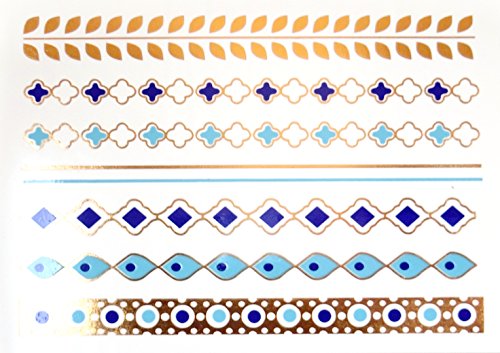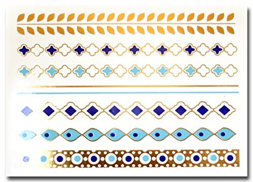 Akjo Group E Design 34-41 [No.40] Temporary Metallic/Gold Tattoo, Silver/Turquoise Green