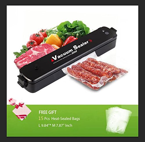 •✅【Fresh Food your ideal choice 】: It is an ideal food protectant for vegetables, meat, fruits and pickled foods. Keep the food from stench and bacteria and peanuts and other dry foods for longer. Heat-Sealed Bags: 15"X9.8"×7.8",Vacuum sealer dimension:14.57"x2.76"x2.05"