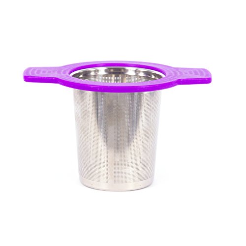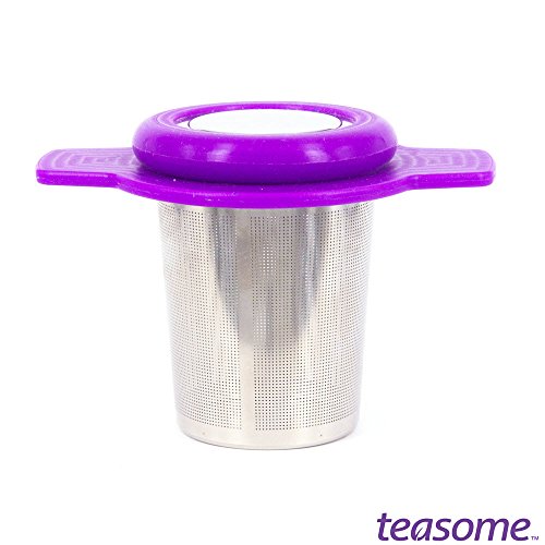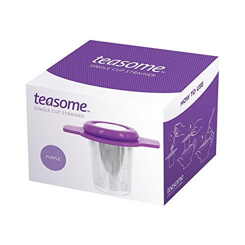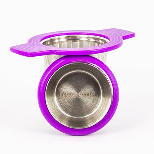 Single Cup Tea Strainer by Teasome - Fine Mesh Stainless Steel Strainer for Loose Leaf Tea - Features Silicone-Coated Handle & Lid - Perfect for English Breakfast, Teavana, Green Tea & More! (Purple)