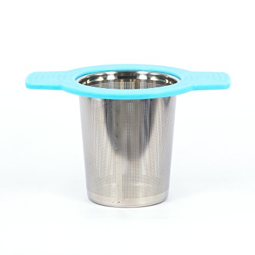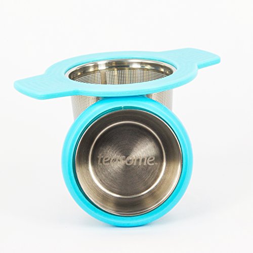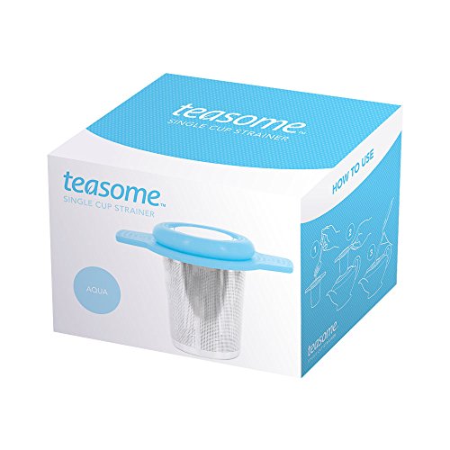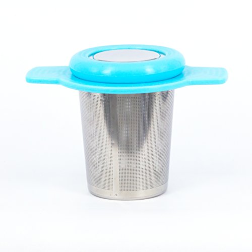 Single Cup Tea Strainer by Teasome - Fine Mesh Stainless Steel Strainer for Loose Leaf Tea - Features Silicone-Coated Handle & Lid - Perfect for English Breakfast, Teavana, Green Tea & More! (Aqua)