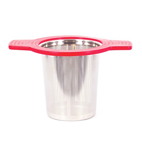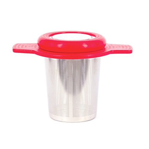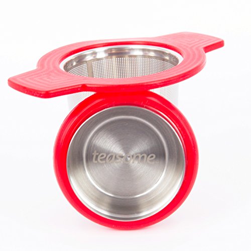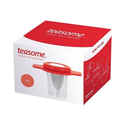 Single Cup Tea Strainer by Teasome - Fine Mesh Stainless Steel Strainer for Loose Leaf Tea - Features Silicone-Coated Handle & Lid - Perfect for English Breakfast, Teavana, Green Tea & More! (Red)