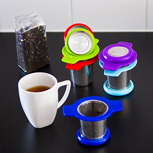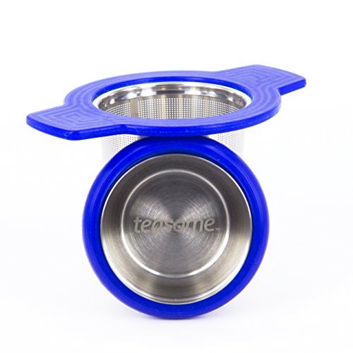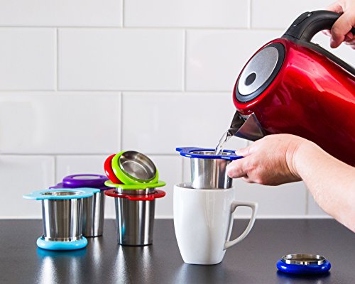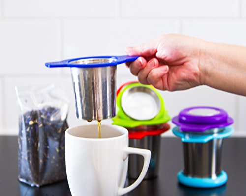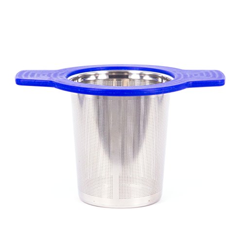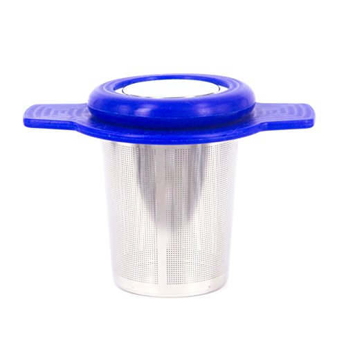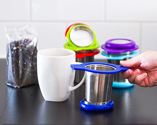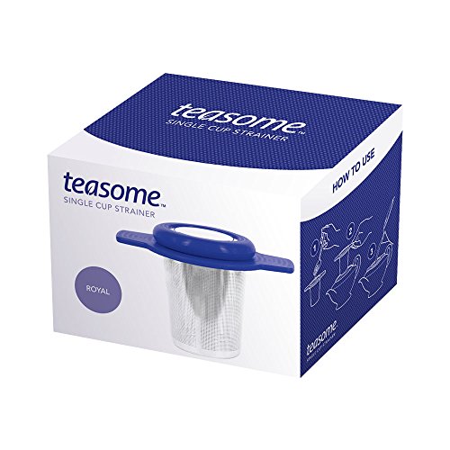 Single Cup Tea Strainer by Teasome - Fine Mesh Stainless Steel Strainer for Loose Leaf Tea - Features Silicone-Coated Handle & Lid - Perfect for English Breakfast, Teavana, Green Tea & More! (Royal)