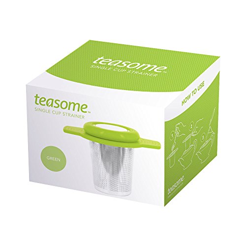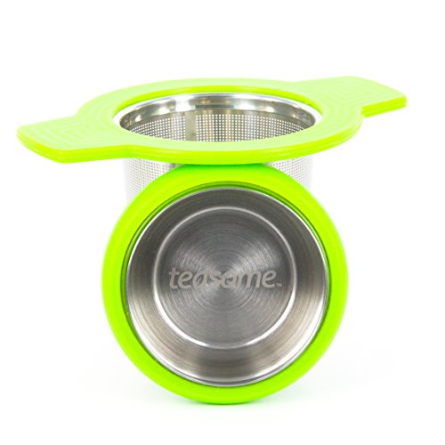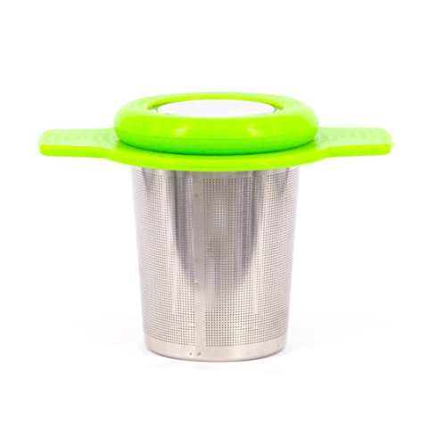 Single Cup Tea Strainer by Teasome - Fine Mesh Stainless Steel Strainer for Loose Leaf Tea - Features Silicone-Coated Handle & Lid - Perfect for English Breakfast, Teavana, Green Tea & More! (Green)