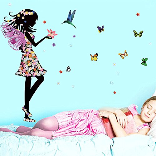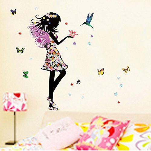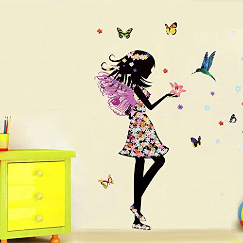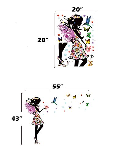-. Title : DNVEN (55"w X 43"h) Angel Wings Beautiful Girl Flowers Butterfly DIY Wall Stickers Removable Home Decoration Living Room Bedroom Girl's Room D¨¦cor Self Adhesive Creative Art Mural Decorative Decals