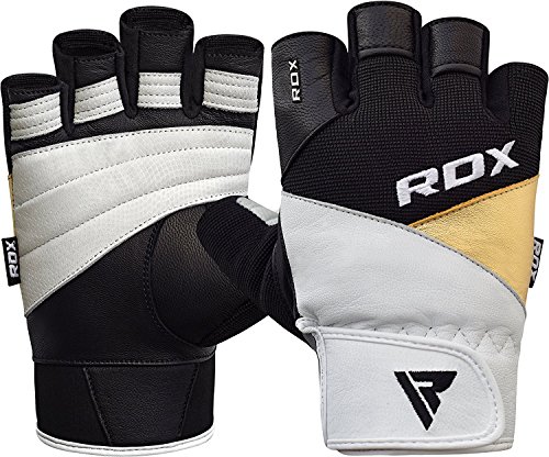 -. Binding : Misc. -. Brand : RDX -. Feature : Double-reinforced stitching throughout design ensures long-life and solid durability. / Quick-EZ Velcro closure strap is made using authentic leather and stretches till the mid-section of hand where the rest is covered with Metallic leather / Inner is made using 4-way stretch material that is breathable and comfy to use. / Half-cut finger design incorporates authentic leather knuckle-side and NUBUCK leather material on the palm-side / Palm incorporates a Patent Pending NUBUCK leather material, providing an efficient grip for better lifting and technique minus the calluses -. IsAutographed : 0 -. IsMemorabilia : 0 -. Label : RDX -. Manufacturer : RDX -. ProductGroup : Sports -. ProductTypeName : SPORTING_GOODS -. Publisher : RDX -. Studio : RDX -. Title : RDX Weight Lifting Gloves Cow Hide Leather Gym Wrist Support Fitness Crossfit Exercise Bodybuilding Training Workout Sport