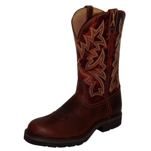 Studio : Twisted X Publisher : Twisted X Binding : Apparel Product Description Twisted X Boot Company proclaims, "We're making 'em right" When it comes to cowboy boots for real cowboys, Twisted X knows you want to pull on your boots comfortable and leave them on comfortable. The Twisted X pull-on work boot features a smooth brandy leather foot under a matching 12", fancy stitched leather shaft. Mesh fabric lining. 1 3/4" block heel. Double stitched welt. Round steel toe. Imported. 0