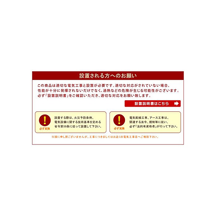 본 상품은 적절한 전기 공사와 설치가 필요합니다.적절한 대응을 되어 있지 않은 경우,성능이 충분히 발휘되지 않는 만이 아니게 과열 등의 위험이 생기는 경우 (이)가 있습니다.