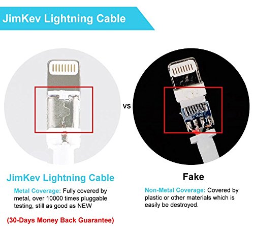 JimKev Lightning Cable (1m) for iPhone 6s 6 Plus 5s 5c 5, iPad Pro Air 2, iPad mini 4 3 2, iPod touch 5th gen / 6th gen / nano 7th gen (Apple MFI License Certificate)