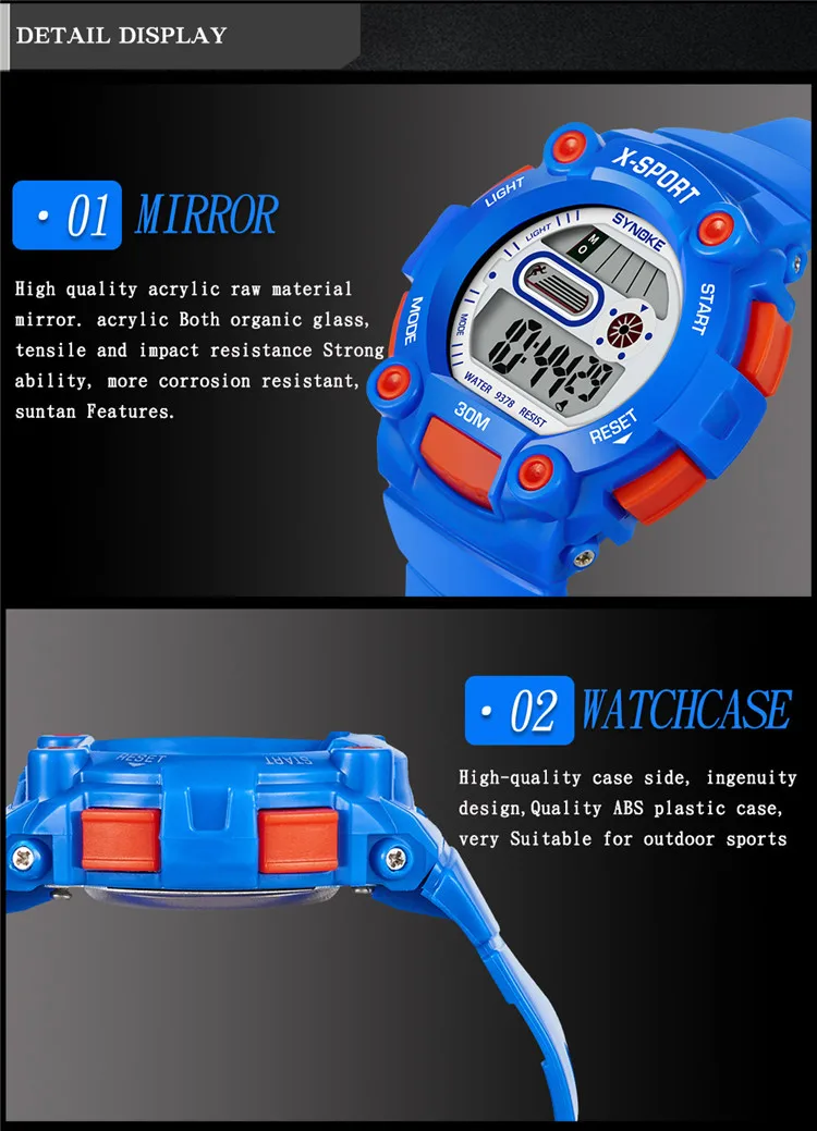 Feature:Water Resistant,LED display,Luminous,Stop Watch,Auto Date,Week Display,Alarm