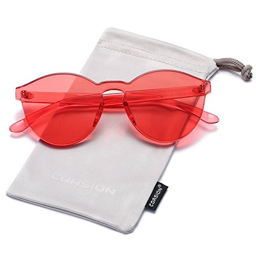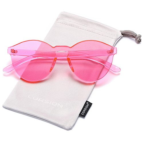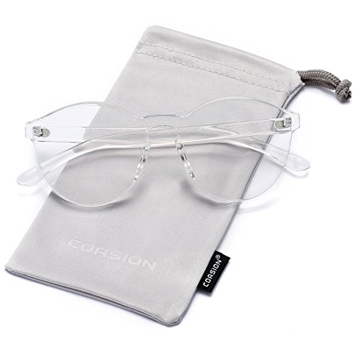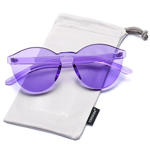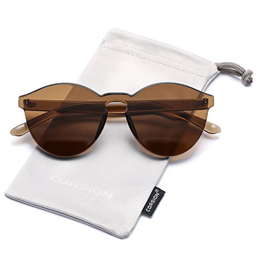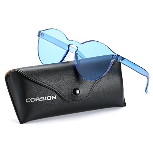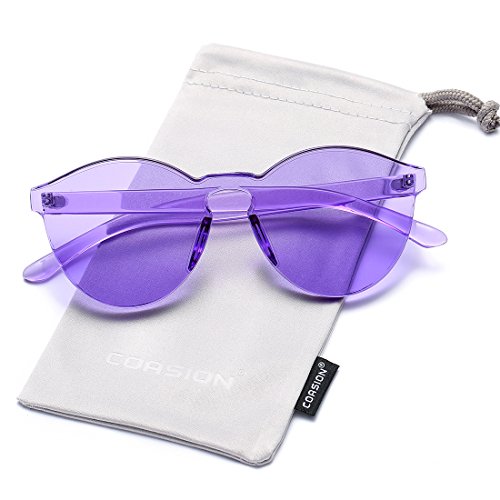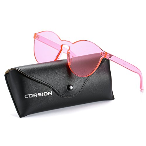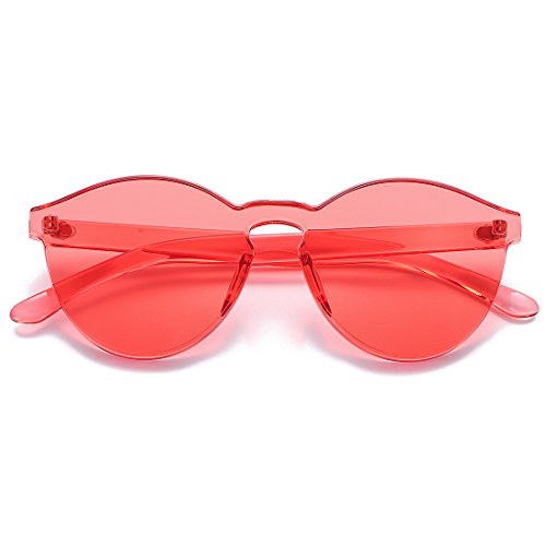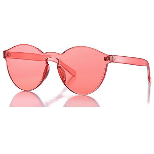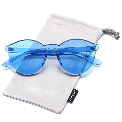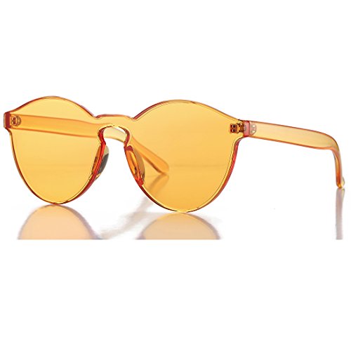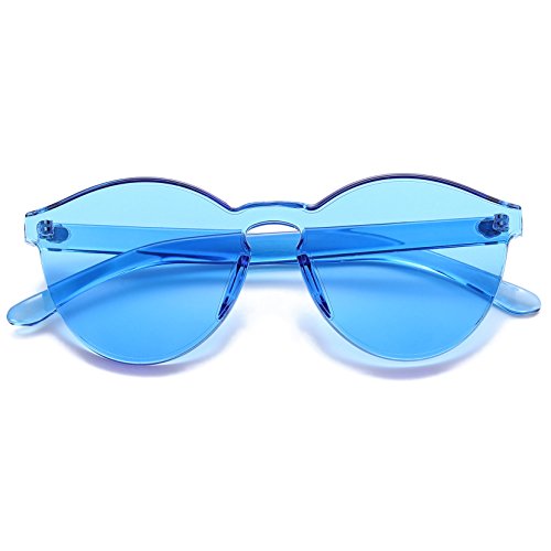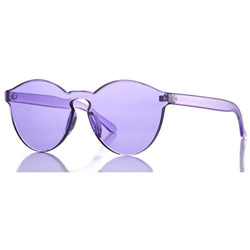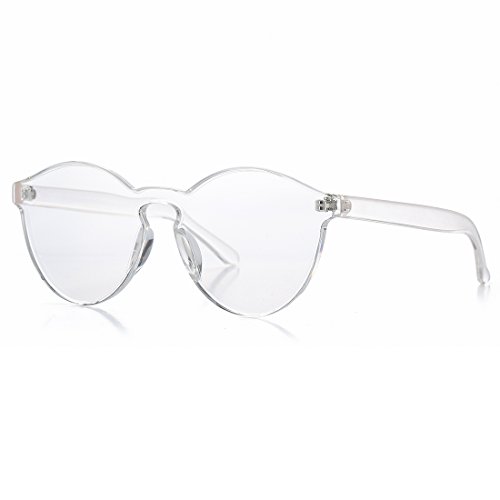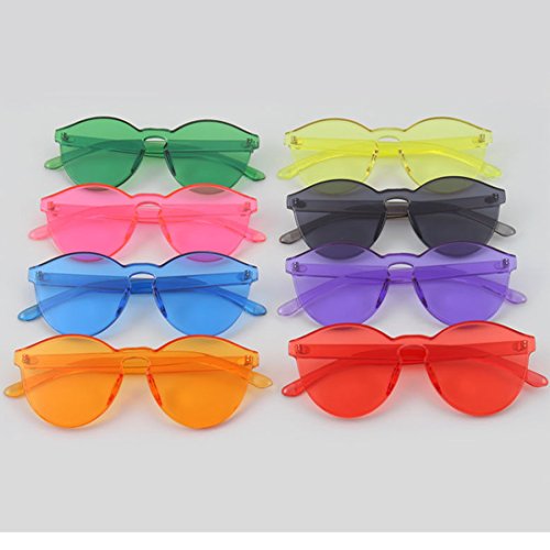 | COASION Fashion One Piece Round Rimless Sunglasses Transparent Candy Color |