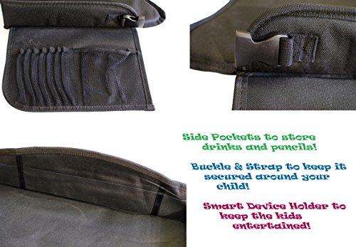 Studio : Kid Trekz Publisher : Kid Trekz Binding : Baby Product Product Description Features: 100% Brand New High Quality. Durable and light. Cleans easily and dries quickly after being wet. Black color. Long strap to keep on your child in their seat. Folds flat for easy storage! Specification: Material: Nylon Surface, Polyester Foam Size: 16 x 13.5 x 1.2 inches ? SMART-DEVICE POCKET-Innovation to make your life easier. Place a smart device in the touch-screen plastic to let them watch their favorite show! Personalized entertainment while keeping the tray open for additional activities. ? PERFECT SIZE-Easily watch movies while coloring or doing work. Fits laptops and coloring books-Keeps airplane travel sanitary! ? FOLD-DOWN CUP HOLDER/STORAGE-Tuck the sides away or deploy them out to store cups, stuffed animals, or pencils! Velcro keeps them neatly folded for added support in tight spaces. Fits with most car seats and easily on airplane trays keeping the play and snack area sanitary! ? EASY CLEANING-Made with premium 600D polyester, easily wipe liquids away as they stay beaded on top. Messy fingerprints are wiped away with a damp washcloth on the touch-screen plastic. ? DURABLE-Designed to keep up with your child, the base is sturdy yet flexible. No cardboard which easily snaps, we ensure your child can draw and play while still allowing it to be soft on the lap and snap-proof. 0