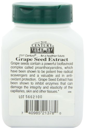 Studio : 21st Century Publisher : 21st Century Binding : Health and Beauty Product Description The grape seed features a powerful bioflavonoid complex called proanthocyanidins, which have been shown to be good free radical scavengers and deliver valuable antioxidant protection. No Sugar, Salt, Yeast, Preservatives, or Artificial Flavors, and 21st Century unconditionally guarantees their product for purity, freshness and label potency. 0