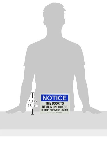 Brady 127064 Door Sign s Sign, Legend "This Door To Remain Unlocked During Business Hours", 7" Height, 10" Width, Black and Blue on White