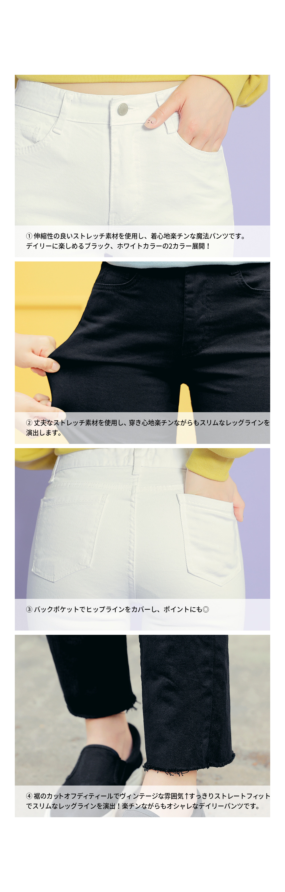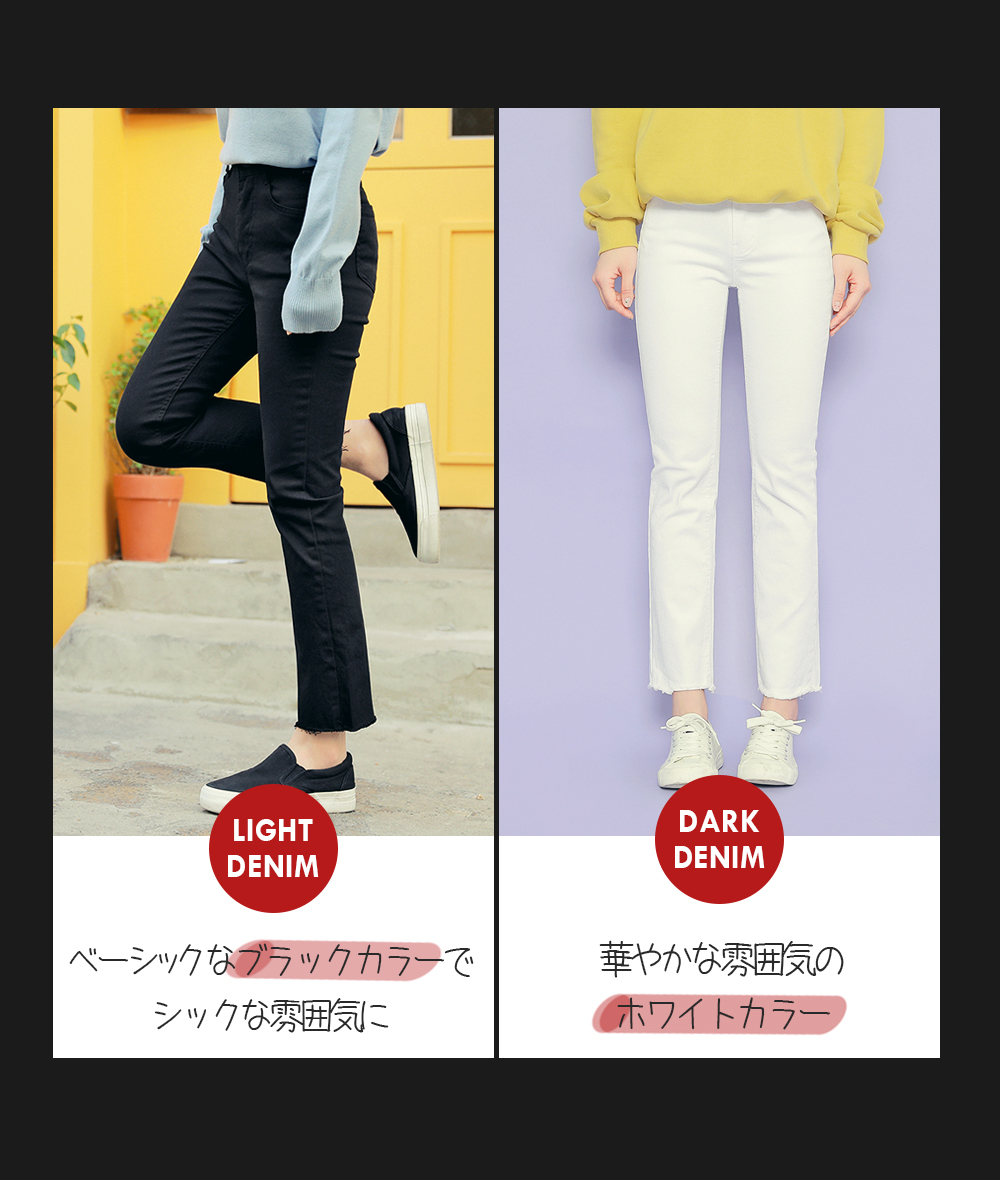 ベーシックなデザインのブーツカットをご紹介します。デイリーに楽しめるブラック&ホワイトの2カラー展開で、どんなアイテムとも相性バッチリ♡1度穿いたらやみつきになるフィット感です。裾部分のカッティング加工で洗練されたオシャレPOINTをプラスしました◎