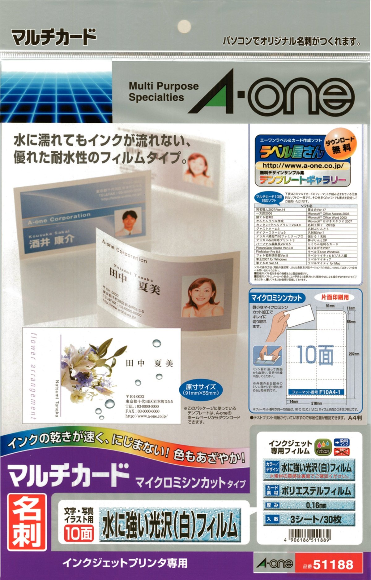In-One (A-one) multi-card inkjet printer special paper water (white) film A4 size 10 sided business card size 3 sheet strong gloss (30 sheets) 51 188 (japan import)